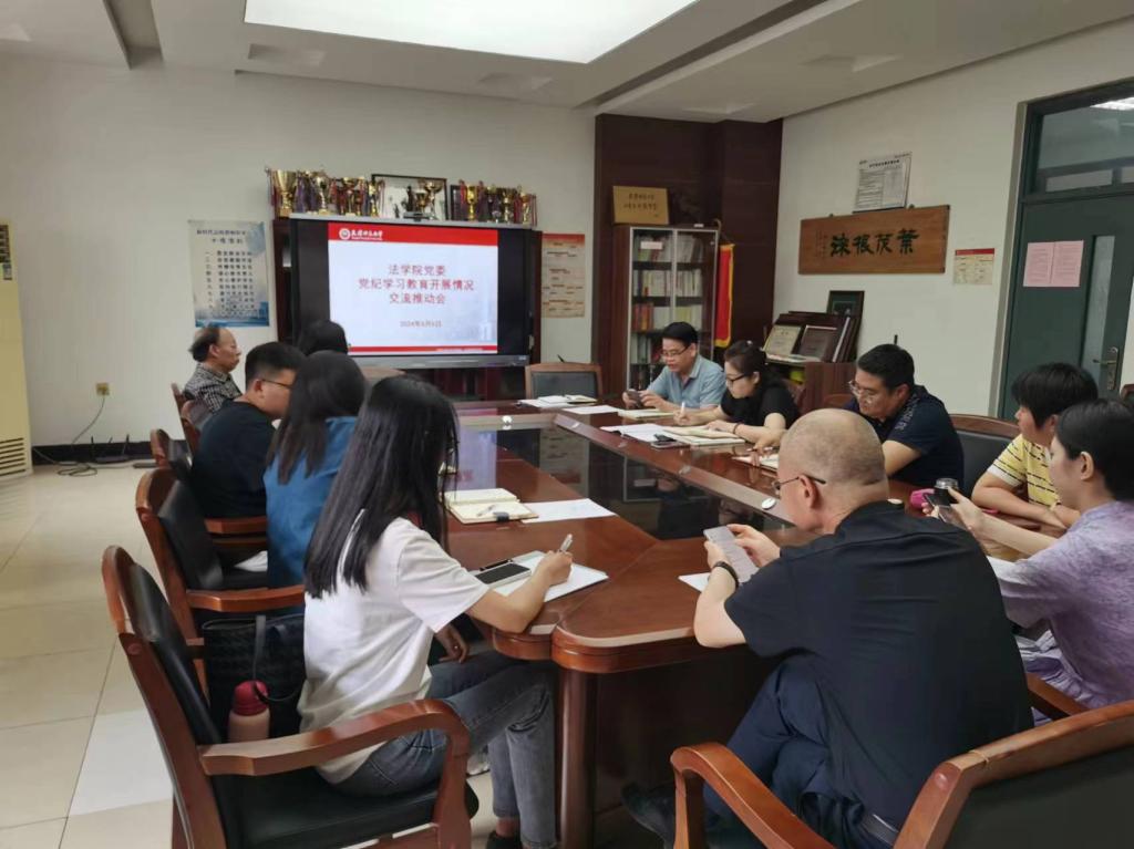 2024年6月6日,beat365亚洲版官网党委召开党纪学习教育开展情况交流推动会暨“弘扬教育家精神,躬耕法学教坛”教师交流座谈会。会议由党委书记何璐主持,师生党支部书记参加会议。