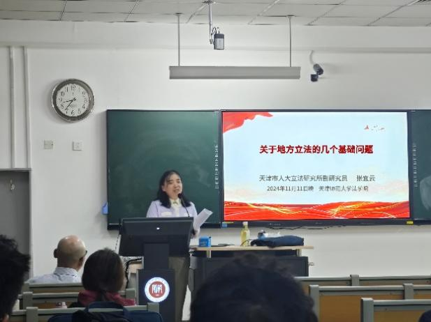 2024年11月11日晚,beat365地方立法理论与实践法律实务讲坛成功举办,讲坛由天津市人大立法研究所副研究员、北京大学法学博士张宜云女士主讲,题目为“关于地方立法的几个基础问题”,beat365副院长郭明龙教授主持活动,法律硕士研究生与本科生100余名参加了这次讲坛。