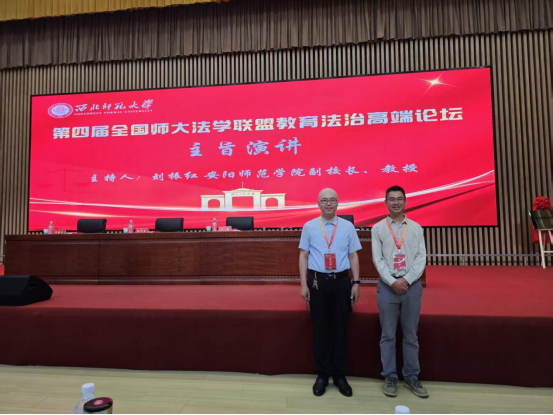 6月15日,由全国师大法学联盟、西北师范大学主办,西北师范大学beat365亚洲版官网承办,兰州工商学院beat365亚洲版官网、北京德恒(兰州)律师事务所协办的第四届全国师大法学联盟教育法治高端论坛在西北师大云亭校区举行。来自北京大学、北京师范大学、华东师范大学、beat365亚洲版官网等65所高校的200余名专家学者参加,beat365党委委员、副院长郭明龙和张茂月老师应邀与会。