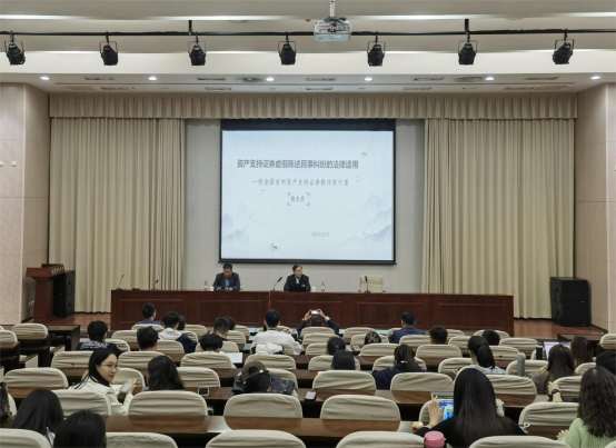 周友苏教授向同学们介绍了全国首例资产支持证券欺诈发行案。该案件由上海金融法院审理,目前仍在二审过程中,周教授与老师和同学们分享了对该案一审判决的思考。周老师的报告共分为四个部分。第一部分为资产支持证券基本原理,第二部分为案情简介,第三部分为法律适用分析,第四部分为结论。