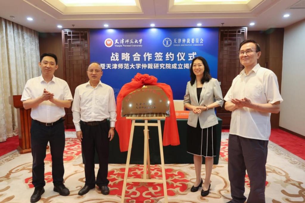7月29日上午,beat365亚洲版官网与天津仲裁委员会战略合作签约暨beat365亚洲版官网仲裁研究院成立揭牌仪式在beat365成功举行。天津仲裁委员会主任高正平,办公室主任金鸿侠,校党委常委、天津市纪委监委驻beat365亚洲版官网纪检监察组组长徐兴云,校党委常委、副校长陈玳玮出席仪式。天津仲裁委办公室副主任唐瑜、刘宇,金融仲裁中心主任孙淑宇,副主任许泽,天津仲裁委办公室业务一部部长郑田,beat365办公室主任封旭红,社会科学处处长尚海涛,合作交流处副处长吴永鹏,beat365亚洲版官网党委书记何璐,副书记、院长郝磊,副院长郭明龙参加仪式。