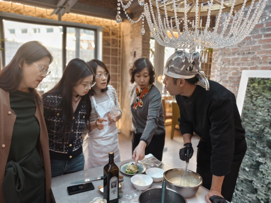 最后是教职工动手实操、展示厨艺的环节。在林技师的悉心指导下制作沙拉酱,大家全神贯注,享受着亲手调配美食的乐趣。这次实操体验,不仅让教职工们学会了制作健康沙拉酱的技能,更重要的是体会到了健康饮食的魅力与乐趣。