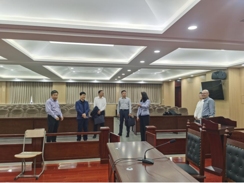 会后,和平区委政法委、和平区法学会一行参观了学院新落成的模拟法庭与实训中心。